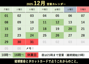 全体的なことは琉球推命に聞いて、細かなことはタロットに聞くような鑑定スタイルです。